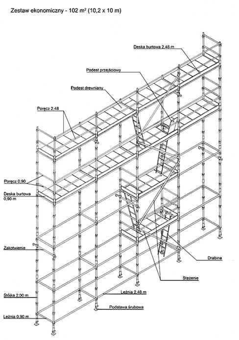Zapraszamy Państwa do zapoznania się ze szczegółowymi rysunkami zestawów, które posiadamy w ofercie. Jako producent rusztowań z wieloletnim doświadczeniem, jesteśmy w stanie przygotować zestaw w pełni indywidualnie dopasowany do potrzeb każdego z Państwa.